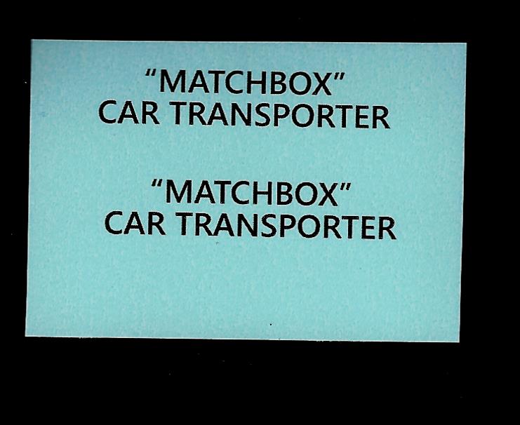 Set of replacement transfers for Matchbox model A2a Car Transporter – Black