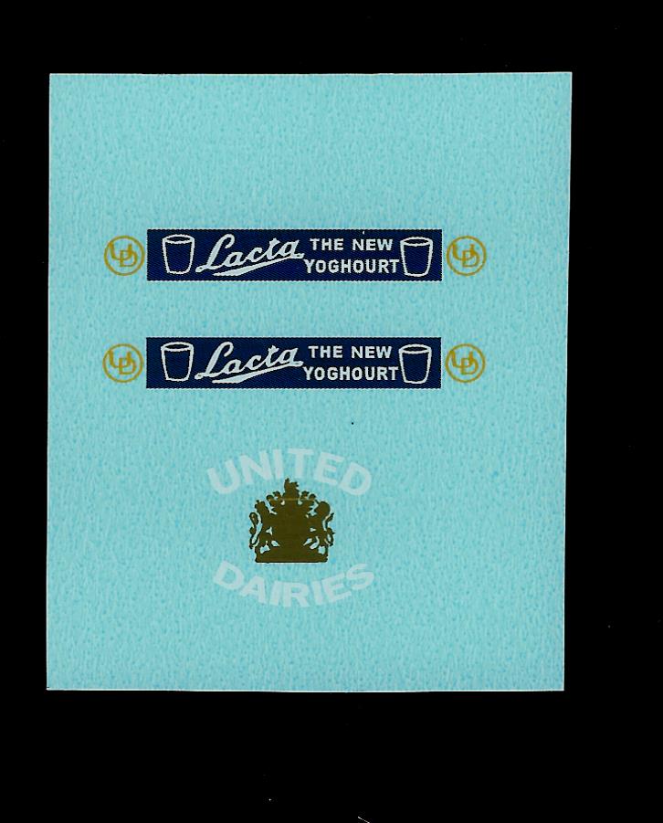 Set of replacement transfers for Spot-On model 122 Milk Float – United Dairies.